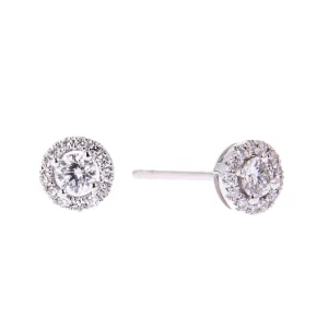 These 18ct white gold stud earrings make for the perfect present to show your appreciation this Christmas. These classy and stylish earrings feature a central brilliant-cut diamond, spotlighting the twinkle of each beautiful stone. Completed with a glamourous halo of smaller brilliant cut diamonds surrounding the centre piece, this design makes for an excellent gift.