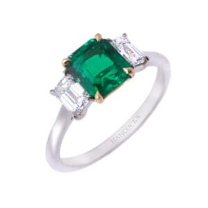 Emerald Cut Emerald and Diamond 3-Stone Ring – £12,295