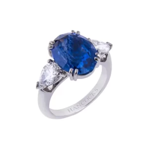 Sapphires are one of the most popular gemstones we offer and this Platinum Oval Sapphire Ring is one of our favourites here at Hancocks. Presenting a magnificent oval sapphire neatly adorned by two bright white pear-cut diamonds, this ring provides the recipient with the utmost elegance and is a real head-turner.