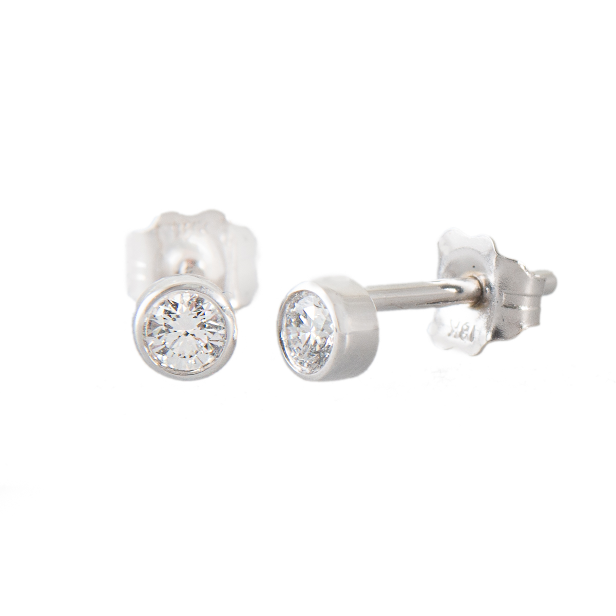 18ct white gold brilliant cut diamond stud earrings, each set mounted in a rubbed over setting to creating this stunning pair of studs.